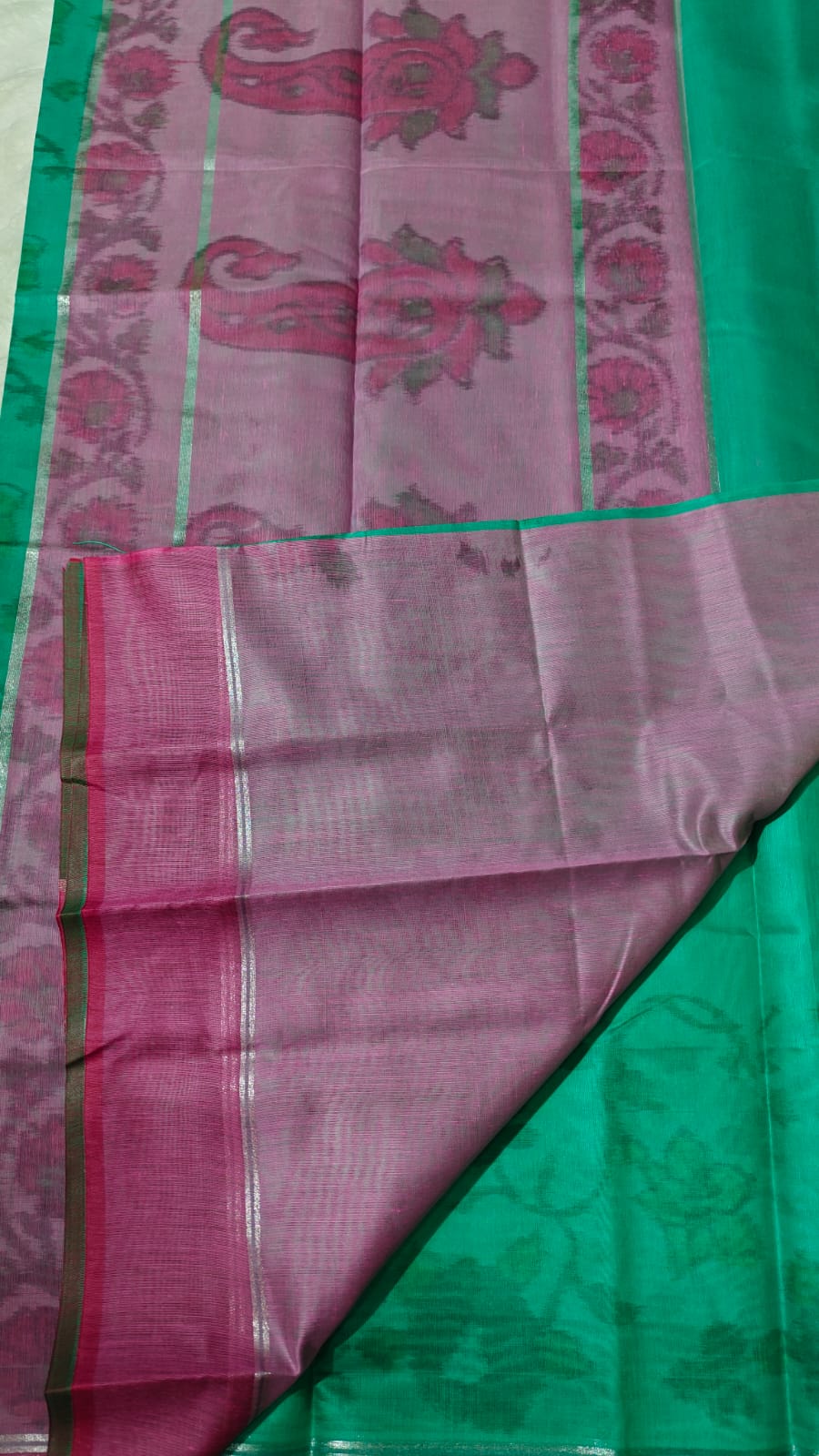 🧵Pochampally Printed Allover Body with Ganga Jamuna border Design. The boby part covered with ikat-style Pochampally prints, known for their patterns and vibrant colors. Ganga Jamuna Design: A dual-colored border style—typically, one side of the border is a different color from the other (symbolizing the rivers Ganga and Jamuna). Features a traditional dual-colored Ganga Jamuna border for a rich ethnic look. Lightweight, stylish, and perfect for any occasion.