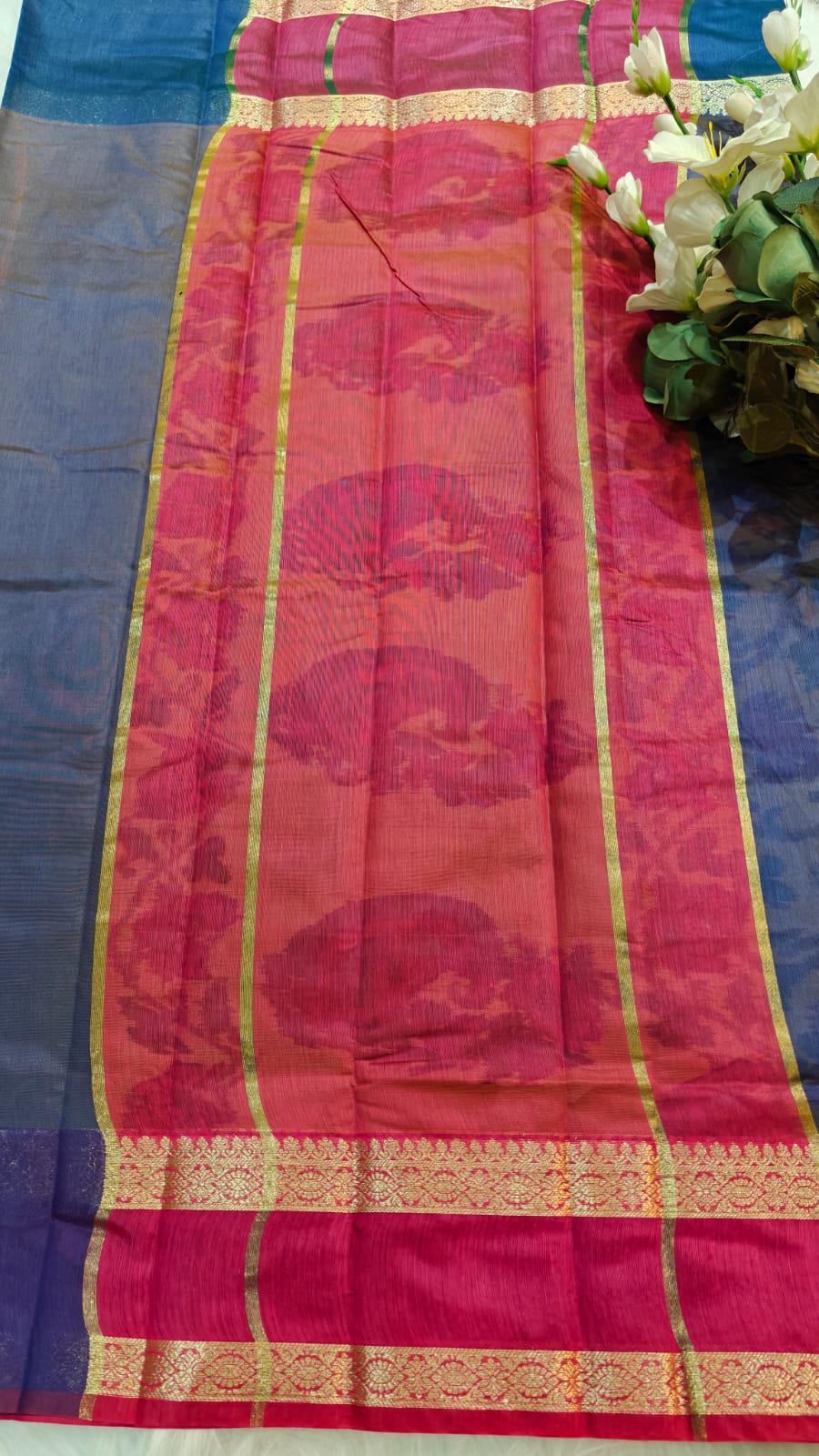 • Ganga Jamuna Design: A dual-colored border style—typically, one side of the border is a different color from the other (symbolizing the rivers Ganga and Jamuna).