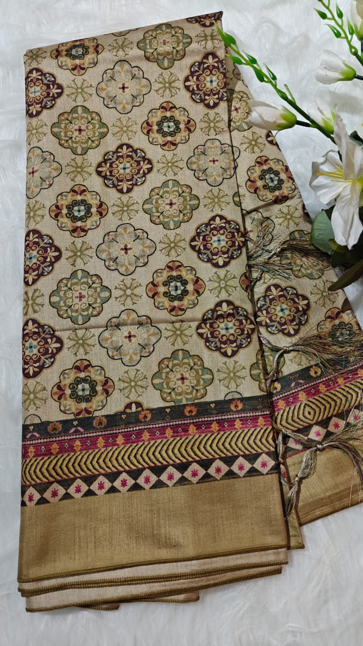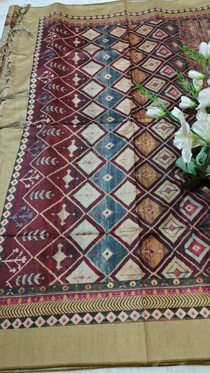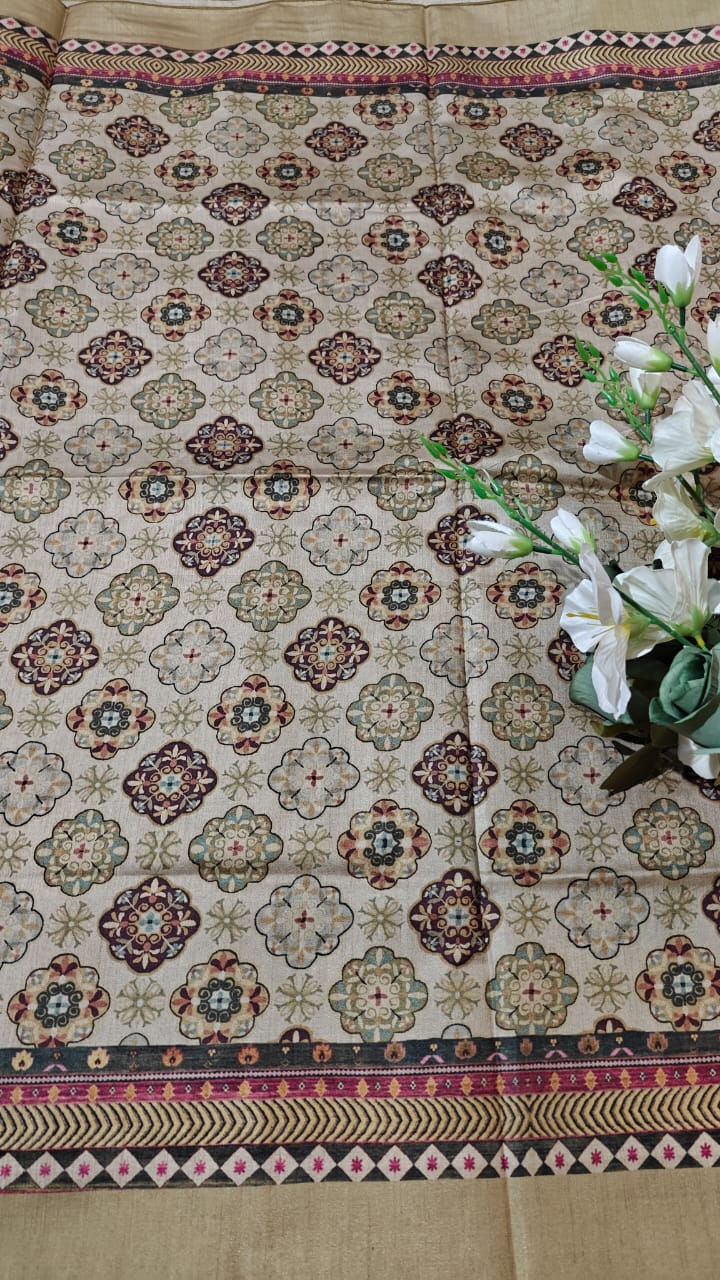 Semi Tussar Silk Saree with Kalamkari digital Print
